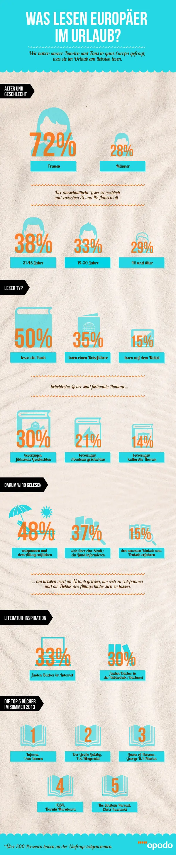 Uns hat im Besonderen gefreut, dass sich unsere Opodo-Fans und -Kunden als äußerst interessierte Reisende entpuppen, die sich über das Reiseziel informieren, dass sie in ihrem Urlaub besuchen – für 37% aller Befragten gehört der die Reiseführer zum festen Bestandteil des Reisegepäcks!