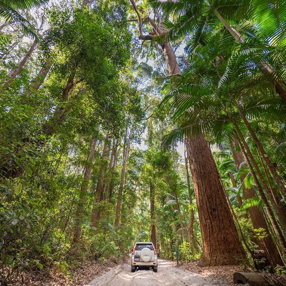 Erkunden Sie die Süßwasserseen, Regenwälder und wilden Dingos von K'gari. Genießen Sie eine 4WD-Fahrt entlang des Strandes und übernachten Sie auf der Insel.