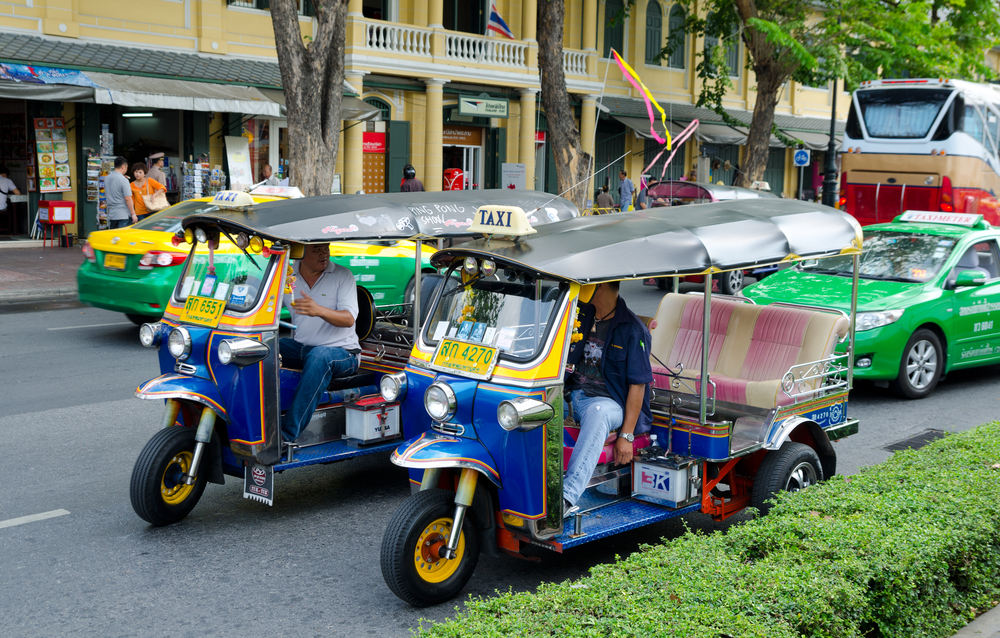 Tuk Tuk in ThailandUm die Atmosphäre Bangkoks zu erleben, dürft ihr es euch auf keinen Fall entgehen lassen, den nächsten Weg mit einem Tuk Tuk, einer dreirädigen Auto- oder Motorradrikscha, zurück zu legen. Damit fahrt ihr nach Siam, wo es mit dem Siam Discovery und dem gigantischen MBK eine unglaubliche Auswahl an exklusiven Shoppingmöglichkeiten gibt. Auf dem Dach des Einkaufszentrums Central World könnt ihr in der Bar einen Drink zu euch nehmen und die tolle Aussicht genießen.