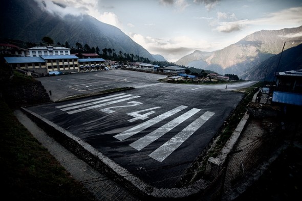 Der Flughafen Lukla mit der sehr abenteuerlichen Start- und Landebahn im Himalaya © chris marquardt/flickr.com