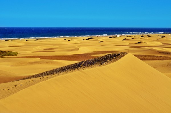 Der Strand an den Dünen von Maspalomas auf Gran Canaria hat durch die riesiege Dünenlandschaft etwas sehr exotisches!