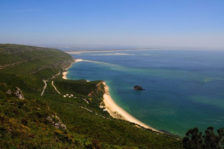 Weiter südlich, auf der anderen Seite des Tejo, gelangen wir auf die Halbinsel Setúbal, die eine Vielzahl an kulturellen und landschaftlichen Schätzen zu bieten hat, darunter goldene Sandstrände, von denen einige weltberühmte Surfspots sind! Für diejenigen, die lieber wandern, sind die grünen Hügel des Naturparks Arrábida passender, aber ebenso beeindruckend. Schließlich bietet die Burg von Palmela, die auf einem Hügel liegt, einen Panoramablick auf die Gegend.