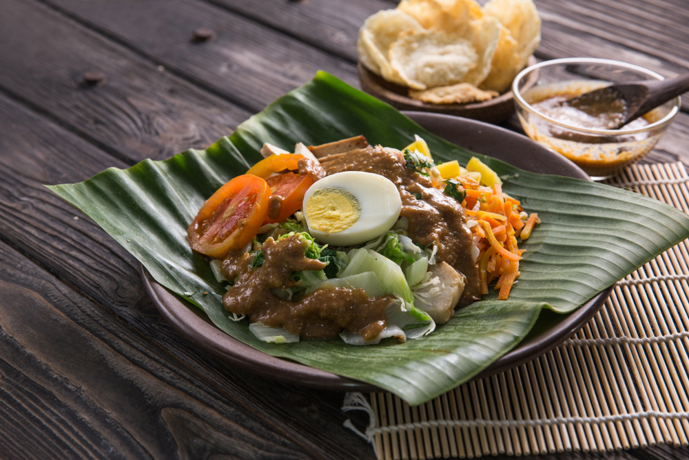Für diejenigen, die eine vegetarische Option bevorzugen, ist Gado-Gado die perfekte Wahl. Dieser bunte Salat besteht aus verschiedenen gekochten Gemüsesorten wie Kartoffeln, Bohnen, Spinat und Gurken, die mit einer cremigen Erdnusssauce übergossen werden. Eine gesunde und köstliche Mahlzeit!