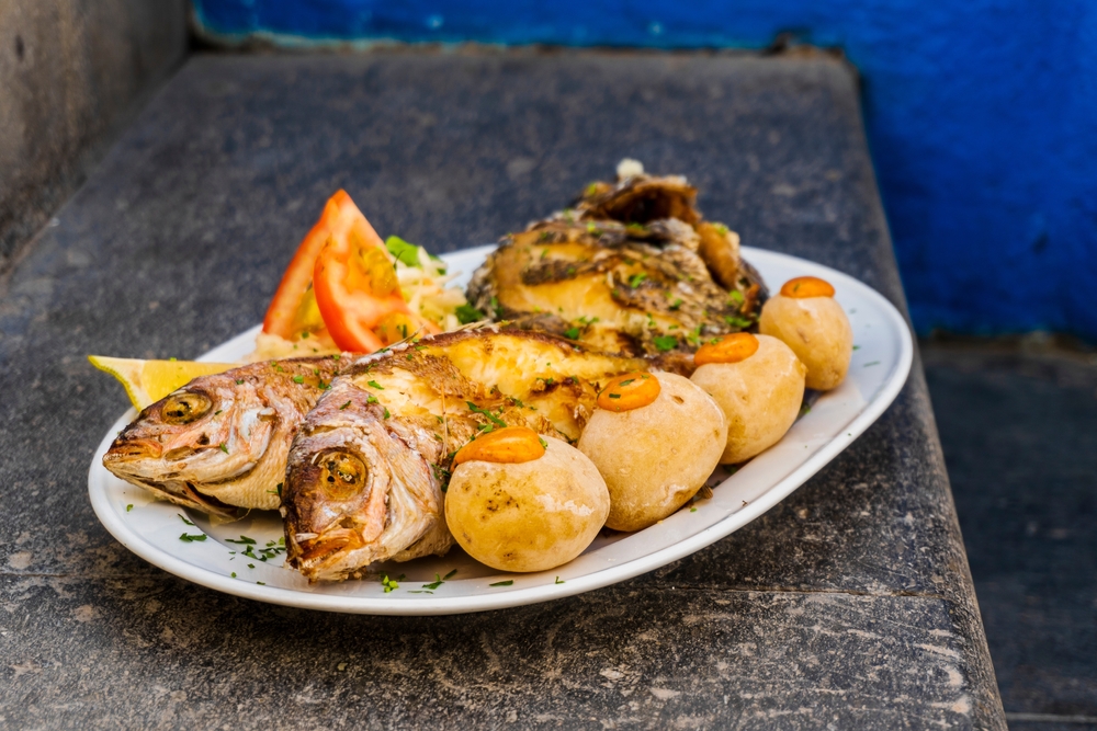 Sancocho Canario ist ein traditioneller Fischeintopf, der auf Gran Canaria zu besonderen Anlässen serviert wird. Für den Eintopf werden verschiedene Fischsorten wie Zackenbarsch, Seehecht oder Goldbrasse verwendet, die zusammen mit Kartoffeln, Süßkartoffeln, Mais und Koriander in einer würzigen Brühe gegart werden.