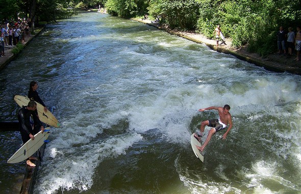 Rasanter plätschert es im Eisbach im Englischen Garten, hier sind selbst im Oktober noch – so gar nicht typisch für Bayern, denkt man vielleicht – Surfer (!) beim Wellenreiten anzutreffen. Außerdem ist der Englische Garten in erster Linie natürlich ein wunderschöner Park, der auch ohne waghalsige Surfer zu einem Herbstspaziergang einlädt.