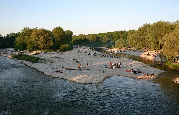 Das Schönste an München sind vielleicht die Nähe zu den Alpen und ein Biergarten im Grünen an fast jeder Ecke. Besonders schön ist letzterer am Flaucher bei den renaturisierten Isar Auen. Hier kann man seine Brotzeit und dazu ein Helles oder Weißbier ganz ohne den Oktoberfesttrubel bei Vogelgezwitscher und Isarplätschern genießen.