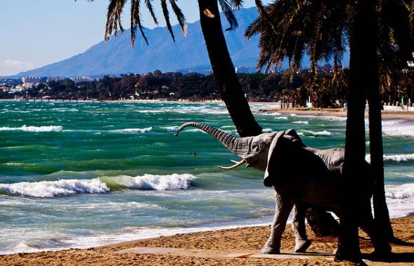 „Elephanten-Dusche“ am Strand von Marbella © Steve-h/flickr.com