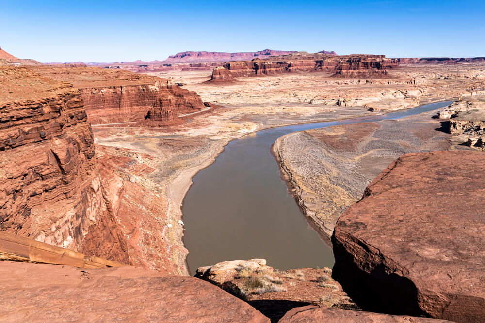Der Canyonlands Nationalpark ist in drei verschiedene Bereiche unterteilt: Island in the Sky, The Needles und The Maze. Im ersten Bereich Island in the Sky solltest du dir den Mesa Arch nicht entgehen lassen, einen majestätischen Bogen mit Blick auf die Canyons. Die beiden anderen Bereiche bieten wilde farbenfrohe Landschaften mit Canyons, die an den Grand Canyon erinnern können. Freue dich auf Wanderungen, ob ein- oder mehrtägig: Es ist möglich, hier zu campen! Wer Abenteuer und Nervenkitzel sucht, kann mit einem Kajak die Stromschnellen hinunterfahren.