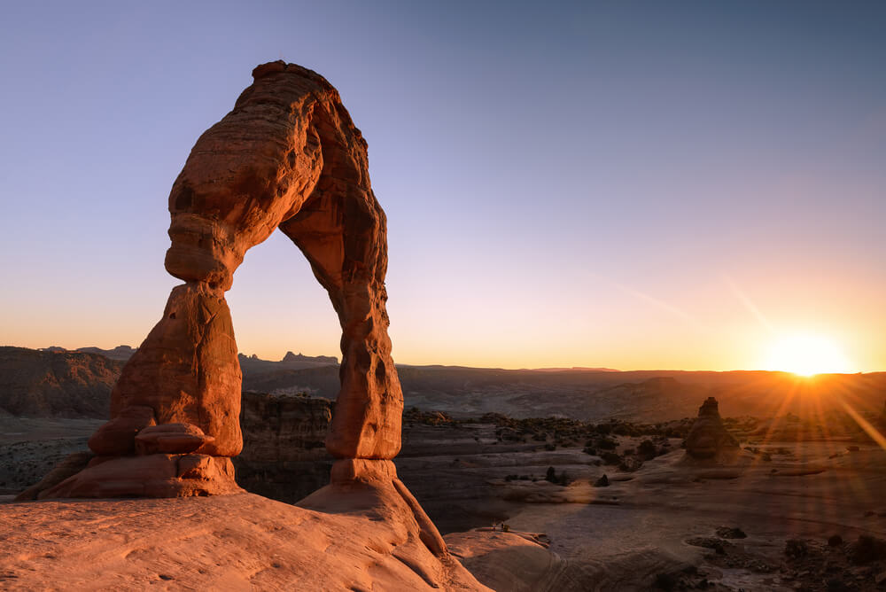 Wir beginnen unsere Tour durch die Mighty 5® Nationalparks mit dem Arches Nationalpark. Tausende von Jahren, Wind und Regen haben auf natürliche Art über 2000 Bögen aus spektakulären roten Felsen geformt. Lass dir den Star des Parks, den Delicate Arch, nicht entgehen! Eine unvergleichliche Tour, die du zu Fuß auf den markierten Wegen erkunden kannst. Du wirst Farben und Strukturen entdecken, die du so noch nie zuvor gesehen hast.
