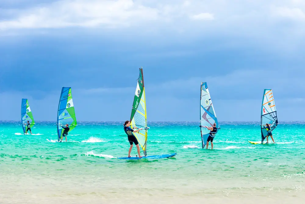 Fuerteventura ist ein Paradies für Windsurfer und die Lagune von Sotavento im Süden der Insel ist weltberühmt für ihre perfekten Bedingungen. Die Kombination aus stetigem Wind, flachem Wasser und einer wunderschönen Kulisse macht sie zu einem idealen Ort für alle Könnerstufen, vom Anfänger bis zum Profi.